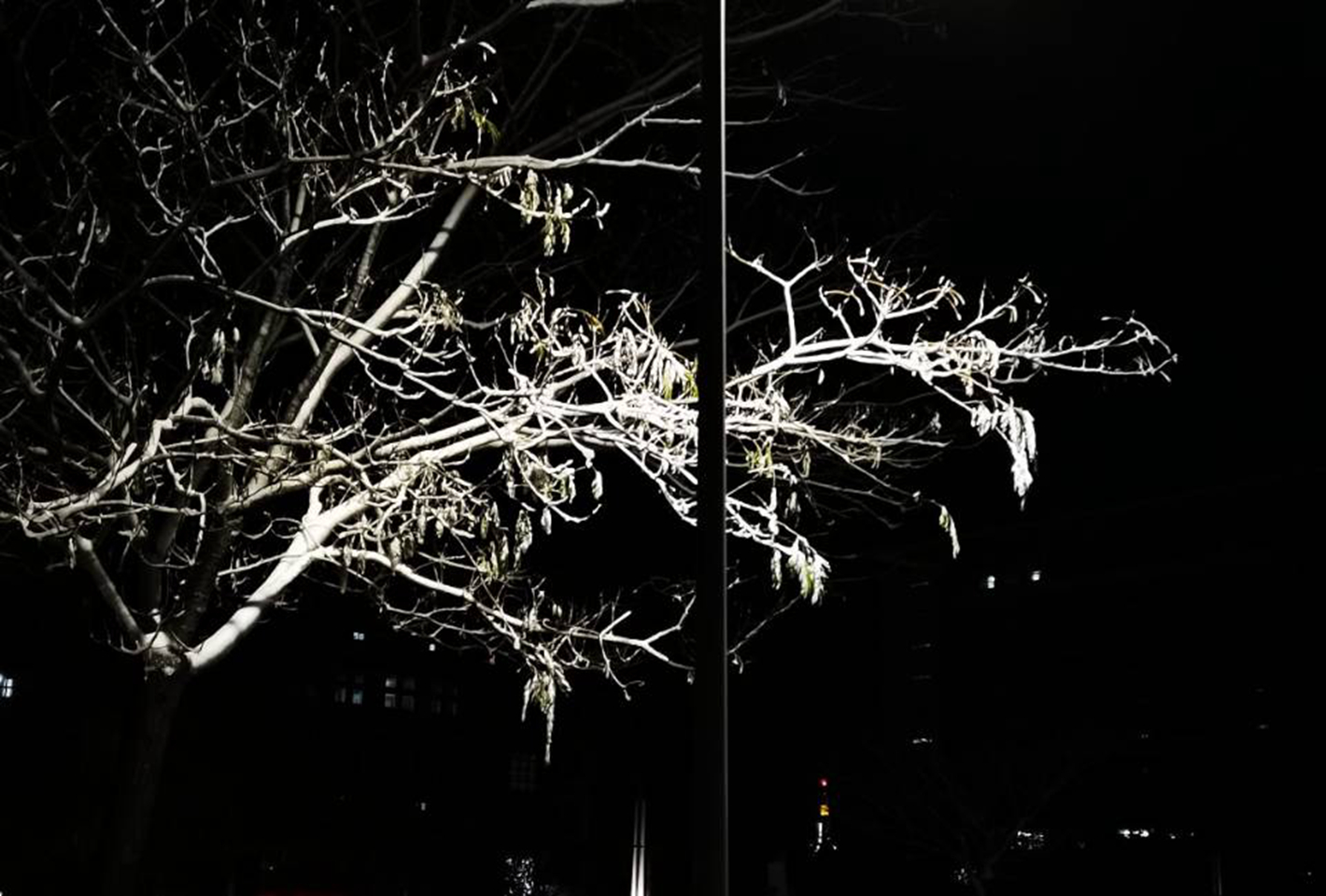 立冬之际,雪花纷纷飘落。这些冬之精灵亲吻着大地,与枝头的红果黄叶嬉戏,为高楼大树穿上新衣……校园里银装素裹,玉树琼枝,俨然一个童话世界。