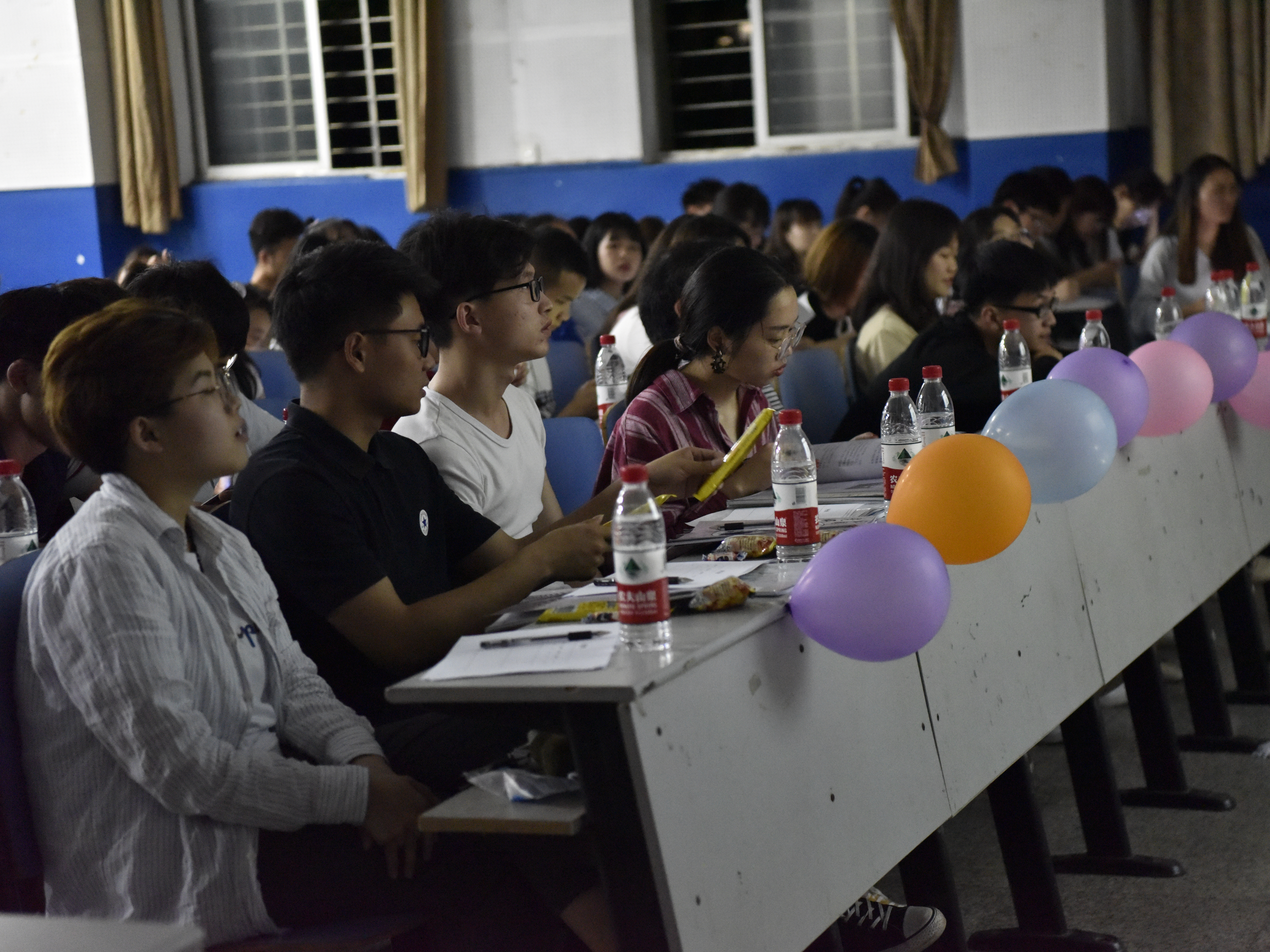为激发学生创造与想象力,提高班级凝聚力,丰富学生大学生活,4月20日晚,第八教学楼1-3教室挂满气球彩带,迎来我院第六届班刊视频设计大赛决赛,学工办成伟明老师、赵华老师、钱子凡老师出席并担任嘉宾,研究生院主席邬林明、大学生通讯社社长彭澎以及我院学生会主席李煜、各部门部长担任评委,17级各班同学到场观看。