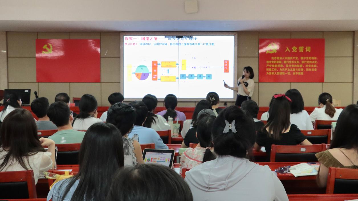 “我一直在思考,作为一名教师我应该教什么,如何教”,沈斌老师以问题展开讲座,“在有限的45分钟内,如何平衡学生的兴趣与教材知识点的关系是一直以来的困惑。”对此,沈老师指出,首先要确定讲什么,讲课内容可以打乱教材,但要始终围绕重点。其次,讲课时应注重让学生自主学习、梳理时间线,不能只顾自己讲,要用情境教学、问题教学等方式让学生真正参与到课堂中去。在谈到自己作为教师的心得时,她表示:“历史老师使命感还是很重的,在课堂中应该更多去给学生弘扬正能量。”