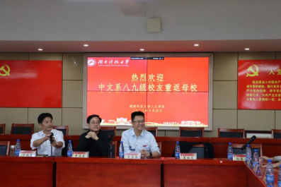 三十沧桑情依旧,桃李携手恩师情。10月4日,人文学院中文系八九级校友重返母校,齐聚立言楼B4-1举行校友毕业三十年返校座谈会。人文学院党委书记曾志东、副院长李康澄、党委副书记罗振军及当年部分授课老师代表人文学院对此次返校的校友们表示热烈的欢迎。会议由罗振军主持。