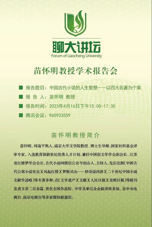聊大讲坛——苗怀明教授学术报告会
