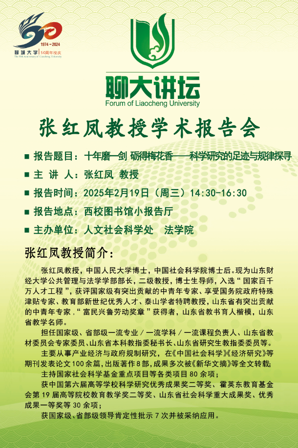 聊大讲坛——张红凤教授学术报告会