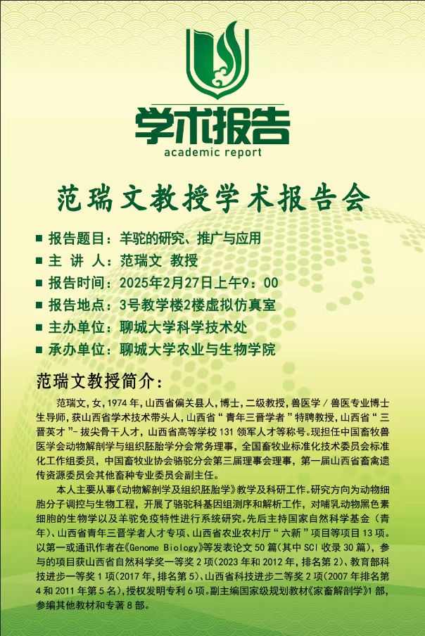 聊大讲坛——范瑞文教授学术报告会