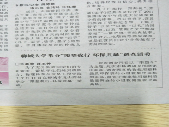 【山东青年报】报道理工学院举办“限塑我行 环保共赢”调查活动
