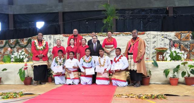 中国驻汤加大使曹小林为表现优秀的学生发放奖学金