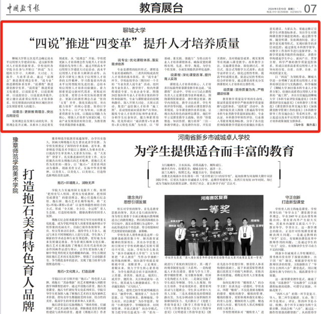 【中国教育报】报道聊城大学:“四说”推进“四变革” 提升人才培养质量