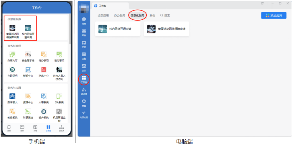 为进一步提升学校重要活动网络保障和校内网络开通工作效率,学校近期开发了“重要活动网络保障申请”“校内网络开通申请”等网上办事流程,并于即日起正式上线运行,各单位根据需要可通过以下任一方式发起流程。