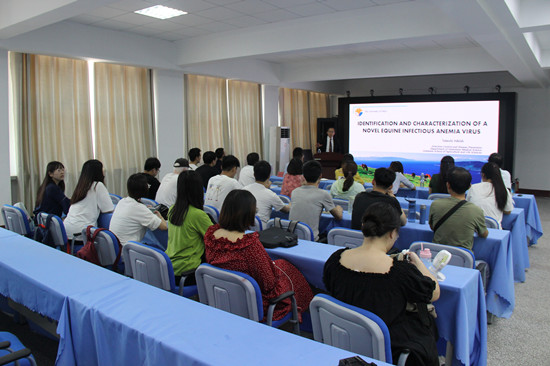 Takeshi HAGA教授长期从事动物病毒学的研究,尤其在HIV和EIAV等反转录病毒的研究方面颇有建树,现任东京大学大学院兽医学专攻教授。讲座中,Takeshi HAGA教授围绕“Identification and Characterization of Novel Equine Infectious Anemia Virus from Feral Misaki Horse(从日本野马中鉴定了新的马传染性贫血病毒)”这个主题,首先对新的马传贫病毒在日本传播以及危害作了较全面的线性梳理,从回顾、病毒监测和基因组特性分析等三个方面对马传播病毒的症状、传播方式作了深入的分析。随后,根据日本野马的总数量以及感染野马的总数量,分析论证了该病毒的控制方向。讲座中,Takeshi HAGA教授儒雅的气度、严谨的论证、渊博的知识都给听众留下了深刻的印象。