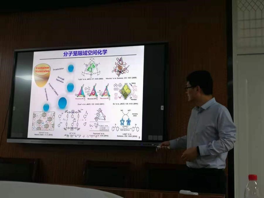 孙庆福主要介绍了两方面的内容。第一部分是过渡金属有机大环/笼,过渡金属主要是Pd元素,阴离子受体的诱导配合自适应组装。第二部分是功能性稀土元素,包括稀土金属配合物的多配位、稀土配位超分子多面体的发光调控等。