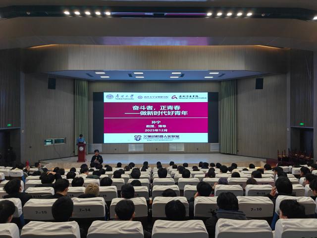 孙宁聚焦新时代机遇与挑战,引述习近平总书记对青年的殷切嘱托,深刻阐释“有理想、敢担当、能吃苦、肯奋斗”的核心要义,既以专业发展为切入点指出和平发展的时代主题与产业变革的澎湃浪潮为青年在数字经济、科技创新等领域施展才干提供了广阔天地,也强调这对青年的知识储备、实践能力等专业素养提出了更高要求,激励同学们将个人专业发展与国家需求紧密结合;同时,他立足当下结合自身科研团队攻坚克难的实践经历及团队青年学者从莘莘学子蜕变为科研骨干的成长故事,以青年成长赋能为核心寄语广大学子,勉励大家锚定目标、脚踏实地,既要心怀“国之大者”找准成长方向,深耕专业领域将课堂知识转化为破解实际科研难题的过硬本领,也要敢于走出舒适区,在竞赛和科研实践中锻炼抗压能力与创新思维,沉下心来打基础、积跬步,在长期积累中成就更好的自己,让青春在“小我融入大我”的奉献中绽放光彩。